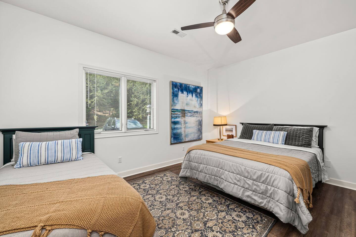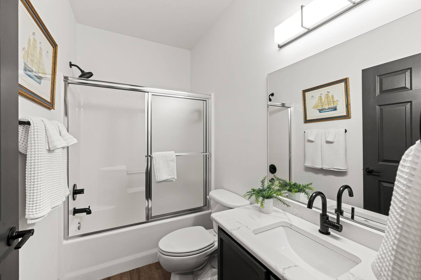 Perfect for 1-2 couples, families, girls' weekends, golf trips, and getaways! *You're not seeing reviews yet because this condo has just been purchased by a new owner and is under new management. It had a perfect rating from 102 reviews on another popular online platform. 🍳 KITCHEN ✓ Keurig ✓ Fridge, oven, microwave, dishwasher ✓ Pots/pans, salt & pepper, oil, dishes, & everything needed to cook meals 🍽️ DINING AREA ✓ Table and chairs 🛋️ LIVING ROOM ✓ Leather sofa + accent chairs ✓ Smart TV ✓ Fireplace w/ gas logs (available to use during the cold season) 🛏️ PRIMARY BEDROOM ✓ King bed w/ luxury level mattress ✓ Dresser + large closet ✓ Attached bathroom 🛁 PRIMARY BATHROOM ✓ Sink vanity + toilet ✓ Shower/tub combo ✓ Shampoo, conditioner, body wash ✓ Towels + hairdryer 🛏️ BEDROOM #2 ✓ Queen bed + twin bed ✓ Closet 🛁 BATHROOM #2: ✓ Bathtub/shower combo ✓ Sink & toilet 🫧 LAUNDRY: washer & dryer available for your use! SCREENED PORCH: outdoor lounging sectional w/ water views, open porch with dining table and chairs *Linens & bath towels provided (please bring your own beach/pool towels) AMENITIES & LAKE USE: Upon booking, you'll need to provide your email address to receive all the info & mobile key access for your amenities (listed below). There will also be a link included to register your vehicle for parking and your boat in advance to rent a boat slip during your stay. (Mariners Landing Guest Release Waiver must be signed at least 48 hours prior to arrival) Available at Mariner's Landing: •2 outdoor pools, 1 indoor pool •2 hot tubs •18 hole championship golf course •driving range •tennis courts •pickleball •basketball •beaches •fitness center/gym •arcade •dining options You can also rent a boat or personal watercraft/Sea-doo in advance from the Bridgewater Marina hut near the pool at the Pointe at Mariners Landing. WHAT'S NEARBY Onsite Food/Drinks: (1 min drive) Tiff's Lakefront Bruno's Clubhouse Bistro Bottles & Bites Mariners Marketplace (Starbucks) Smith Mountain Lake State Park: 3 miles SML Beach Area: 5 miles Virginia Dare Cruises: 5 miles Local Wineries: 15 min Shopping: 20 min Horseback Riding: 25 min Lynchburg, VA: 50 minutes Roanoke, VA: 1 hr Natural Bridge: 1 hr 15 min Virginia Safari Park: 1 hr 30 min ❄️ CLIMATE CONTROL: central heat & air 🔥 FIREPLACE: Guests may use the gas fireplace in the cold season. 🚗 PARKING: There's a large parking lot just outside the condo. The boat ramp is around the front side of the building. HOSTED BY: This condo is hosted by All Belong Co, a boutique hospitality team dedicated to providing 5 star stays. Our team will take good care of you!