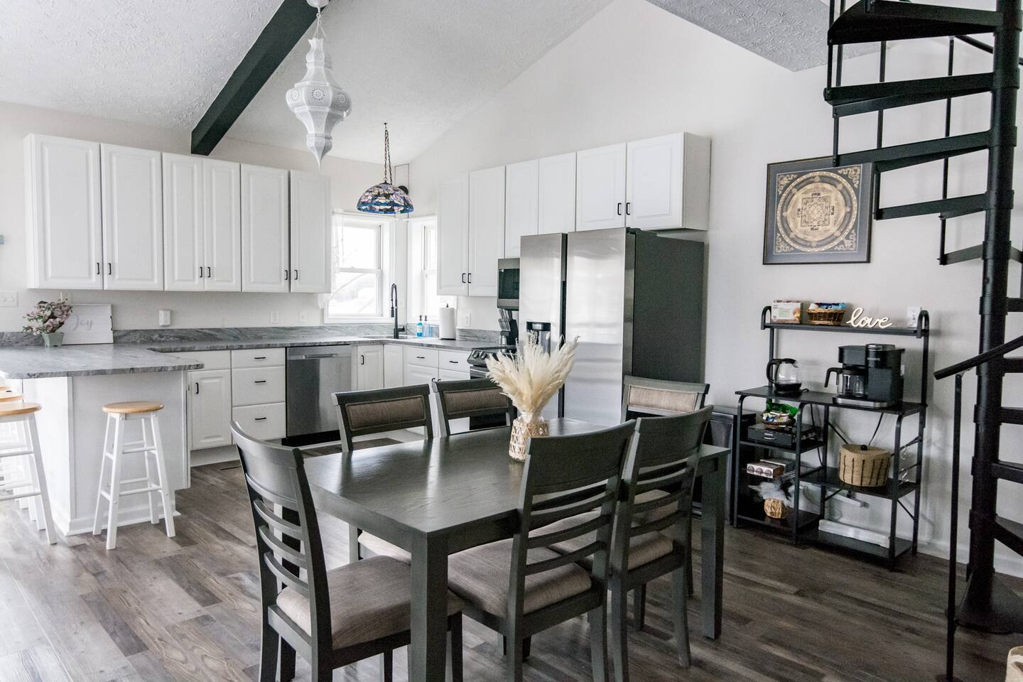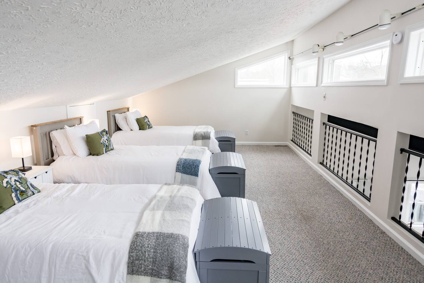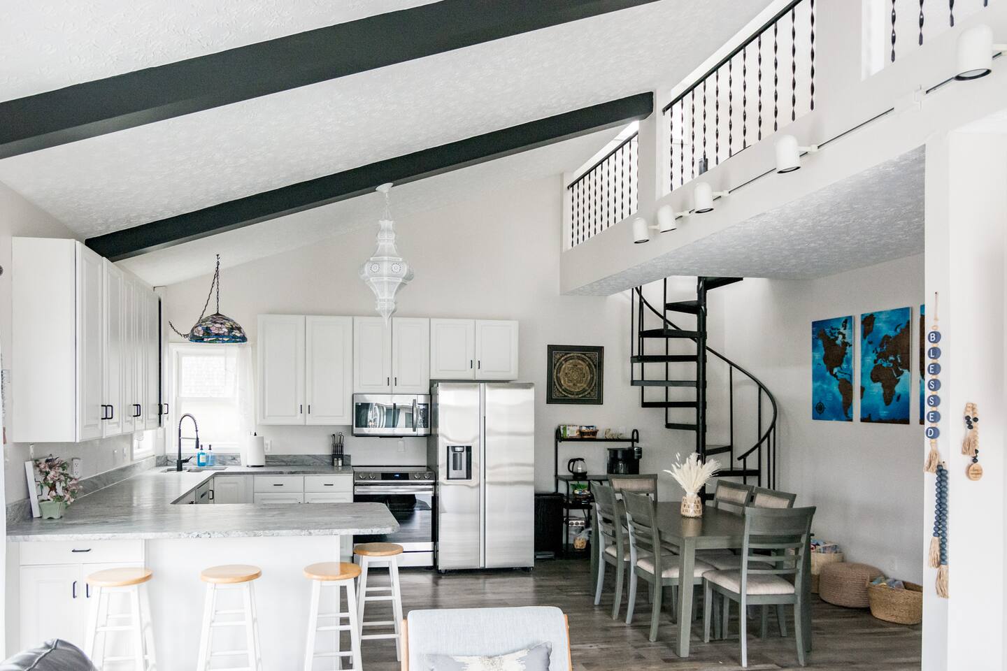 No matter the season, you'll love this relaxing stay at Apple Valley Lake! *MAIN FLOOR* Smart TV, queen sleeper sofa, Playstation 4 with downloaded games 🍳 KITCHEN ✓ Stainless steel appliances (including dishwasher) ✓ Keurig + regular coffee pot ✓ Well-stocked with dishware, glasses, & everything needed to cook meals 🍴 DINING ✓ Table for 6 and 4 barstools at kitchen island 🛏️ PRIMARY BEDROOM ✓ King bed ✓ Smart TV ✓ Walk-in closet with twin roll-a-way bed 🛁 PRIMARY BATHROOM ✓ Stand up shower w/ shampoo, conditioner, & body wash ✓ Hair dryer 🛏️ BEDROOM #2 ✓ Queen bed ✓ Walk-in closet with pack-and-play 🛁 BATHROOM #2 (connected to bedroom and living area) ✓ Tub/shower combination w/ shampoo, conditioner, & body wash ✓ Hair dryer ✓ Washer and dryer 🎮 GAME ROOM/GARAGE ✓ Portable heater (usable year round!) ✓ Ping pong table ✓ Electronic darts game ✓ Yoga mats ✓ Kettlebell weights *UPSTAIRS* LOFT: Accessible via indoor spiral staircase. ✓ 3 twin beds ✓ Table/desk & chair 🚗 PARKING: There is room for up to 3 vehicles to park. Please note there is a wooden staircase leading down to the garage level and home. ❄️ CLIMATE CONTROL: Central heat and air. 🖥️ TV SERVICES - No cable. Smart TV streaming services only (guests use personal login credentials). 🔑 CHECK-IN: Guests may check in with a code anytime after 4pm. Please note that past 10pm, our hosting team may not be reached as we are humans and we do sleep at night. We kindly ask that you check in before 10pm in case any issues arise. 👟 MOBILITY: For our guests with mobility issues, there is a staircase from the parking area down to the home. We do not recommend the spiral stairs for those with mobility issues. 🧺 LINENS: All bathing towels and linens provided. PLEASE BRING SEPARATE TOWELS FOR LAKE USE. 🌊 LAKE USE: • Swimming is allowed. • Fishing is permitted (bring your poles!) with an Ohio fishing license. • We do not have a boat slip available. • Life vests, paddle boards, and pool noodles are available for use. HOUSE RULES & POSSIBLE GUEST SURCHARGES 1. No pets allowed. We are animal lovers, but this is an animal free listing. If a pet is discovered on the property, a $250 fee plus damage will be charged, and the pet(s) must be removed immediately. 2. No smoking within 25 feet of the home. If you do smoke outdoors, please be thoughtful to discard all debris. 3. You must be over 25 to make a reservation. 4. Any outside visitors must be approved by hosts prior to arrival. 5. Swimming and lake use is at your own risk. *The owners have a private, separate lower-level unit that they use occasionally on weekends. (think of it like a separate downstairs condo) There's a chance you may see them on the dock if they're around, but it shouldn't affect your stay. They're quiet and they'll give you all the privacy you desire! 📍WHAT'S NEARBY: • Apple Valley Golf Course (PGA): 5 min • Restaurants: 5-10 min • Kenyon College: 10 min • Walmart: 11 min • Kroger: 13 min • Kokosing Gap Trail: 15 min • Monican State Park: 20 min • Monican Adventures (Ropes course, putt putt, go carts!) 20 min • Amish Country: 55 min • Columbus, OH: 1 hr 15 min Apple Valley Lake feels remote but conveniences like groceries and restaurants are all close by! We highly recommend the deep dish pizza from Dirko's! HOSTED BY: "Little Slice" is hosted by All Belong Co, a hospitality team dedicated to your 5 star stay. They'll take great care of you!