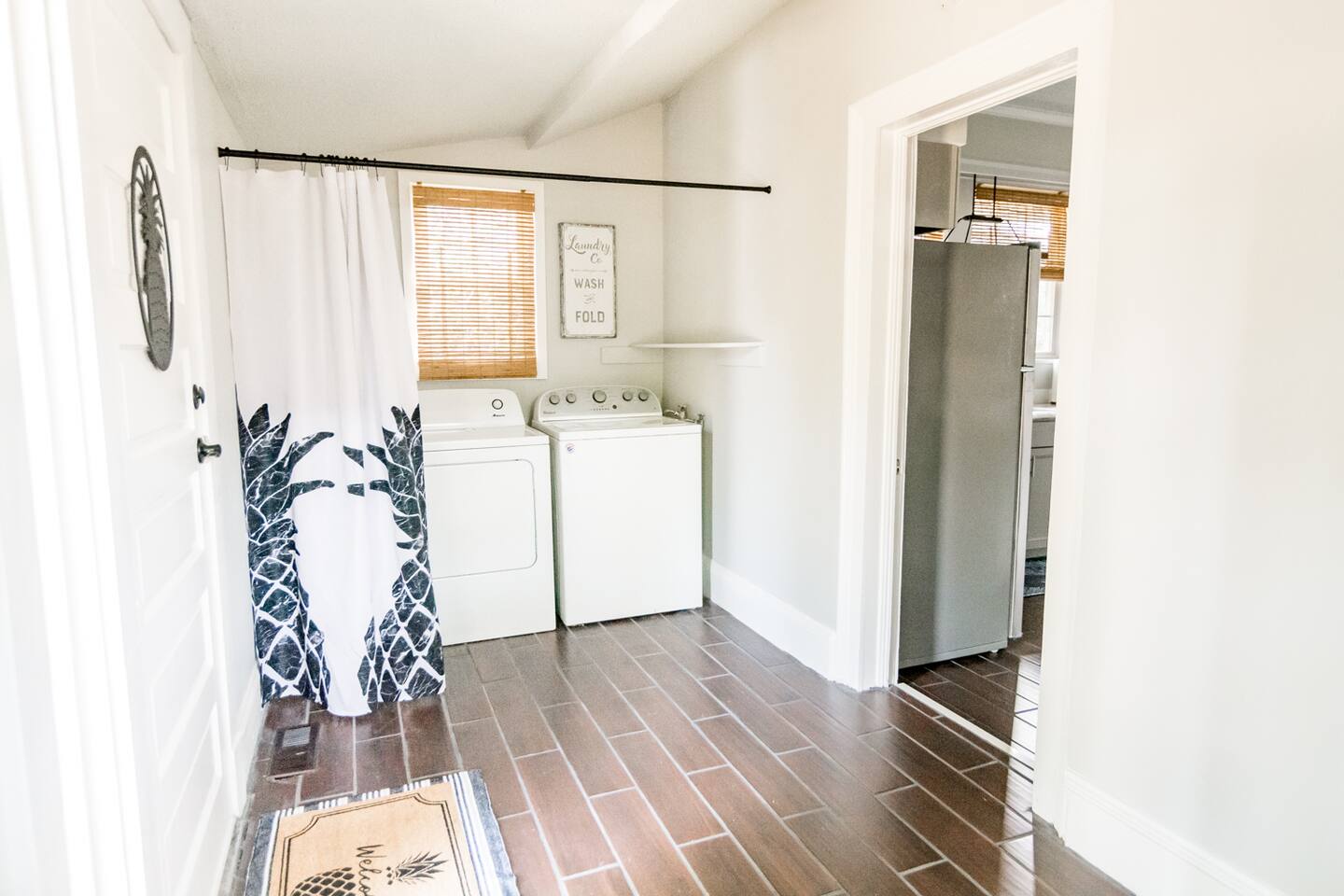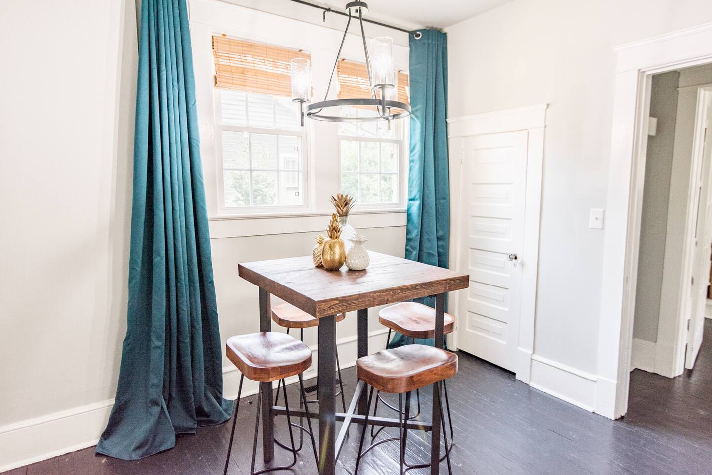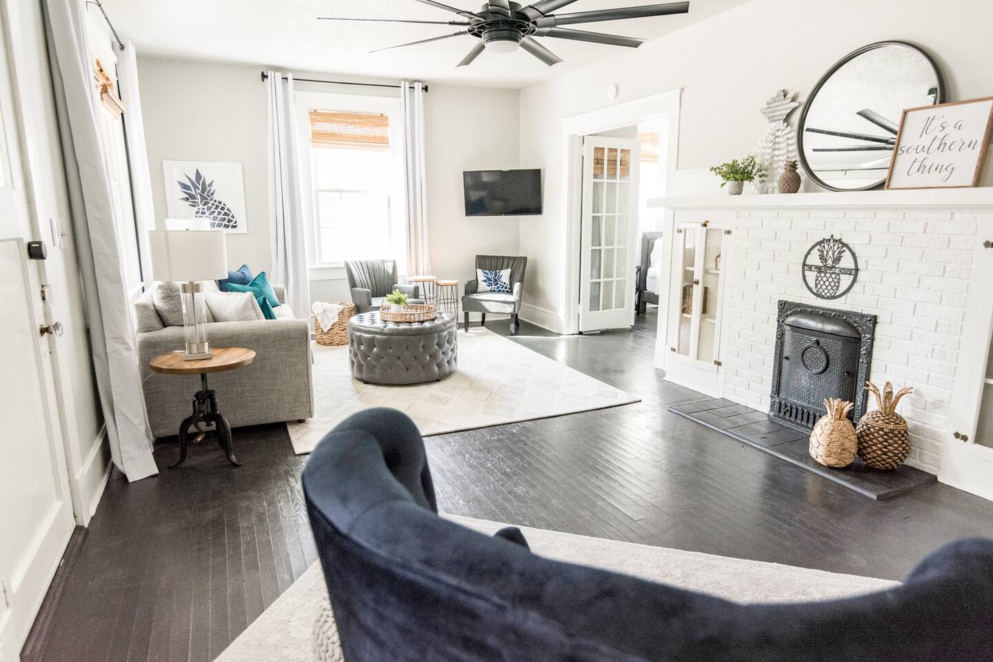 Some of the best accommodations you'll find in Florence! Experience southern hospitality in this historic charmer perfect for professionals. This historic bungalow has 2 separate units, one downstairs and one upstairs. The upstairs "Pineapple Suite" has a separate side entrance. You can check its availability on our other listings to reserve both separately. THIS IS LISTING FOR THE DOWNSTAIRS UNIT only. Here's what you can expect at the Pineapple House: 🛋️ LIVING ROOM ✓ Roku TV ✓ Queen sleeper sofa ✓ Accent chairs *Fireplace is not operable 🛏️ BEDROOM ✓ King bed w/ linens provided ✓ RokuTV ✓ Dresser ✓ 2 closets ✓ Ceiling fan ✓ Room darkening curtains 🚿 BATHROOM ✓ Shower/tub combo ✓ Sink and vanity ✓ Toilet ✓ Towels and washcloths provided 🍴DINING ROOM ✓ Counter height table w/ four stools ✓ Buffet 🍳 KITCHEN ✓ Stainless fridge, oven/range, dishwasher, microwave, toaster ✓ Granite countertops ✓ Keurig Duo & regular coffee maker ✓ Pots/pans, dishes, & everything needed to make basic meals BACK ROOM ✓ Desk area ✓ Laundry room (washer and dryer available) 🌳 OUTSIDE ✓ Front porch with 2 rocking chairs ✓ Large fenced backyard w/ Solo Stove 🚗 PARKING: There is a driveway can park up to 2 cars right next to the house + street parking if needed. If someone is staying in the upstairs unit, please know you may see them in the driveway as well. ❄️ CLIMATE CONTROL: Central heat and air 🔑 CHECK IN: Private entrance is through the front door. Guests may check in at their convenience anytime after 3pm with a personalized code. *You must be 25 years or older to reserve Pineapple House. While there is soundproofing between the upstairs and downstairs, please don't be surprised if you occasionally hear upstairs guests or see them in the side yard, or the driveway. If this would cause you to give us less than 5 stars in your review for something we've disclosed, we might not be the best fit for your stay. We seek to attract quiet professionals to both units. 🗓️ MONTHLY RATES: If you're interested in renting the Pineapple House for over 1 month, we have a long term rental agreement and required monthly cleanings. 📍WHAT'S NEARBY FMU Performing Arts Center 3 min Restaurants 3 min Groceries 4 min McLeod Health Center 5 min Florence Airport 8 min Florence Convention Center 9 min Francis Marion University 10 min MUSC Health Center 10 min HOSTED BY: This property is a part of the All Belong Collective. All Belong Co is a local hospitality business dedicated to 5-star stays. We'll take good care of you!