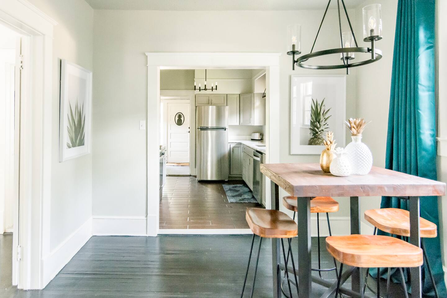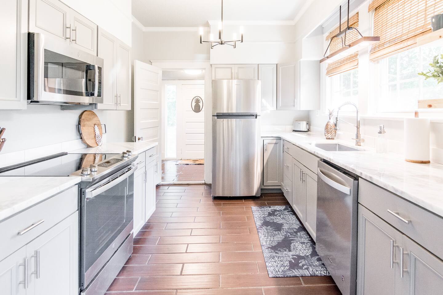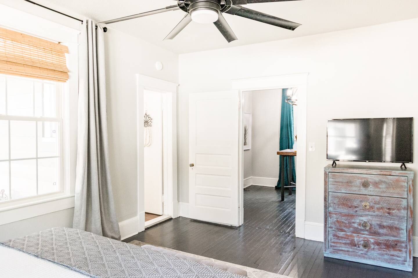 Some of the best accommodations you'll find in Florence! Experience southern hospitality in this historic charmer perfect for professionals. This historic bungalow has 2 separate units, one downstairs and one upstairs. The upstairs "Pineapple Suite" has a separate side entrance. You can check its availability on our other listings to reserve both separately. THIS IS LISTING FOR THE DOWNSTAIRS UNIT only. Here's what you can expect at the Pineapple House: 🛋️ LIVING ROOM ✓ Roku TV ✓ Queen sleeper sofa ✓ Accent chairs *Fireplace is not operable 🛏️ BEDROOM ✓ King bed w/ linens provided ✓ RokuTV ✓ Dresser ✓ 2 closets ✓ Ceiling fan ✓ Room darkening curtains 🚿 BATHROOM ✓ Shower/tub combo ✓ Sink and vanity ✓ Toilet ✓ Towels and washcloths provided 🍴DINING ROOM ✓ Counter height table w/ four stools ✓ Buffet 🍳 KITCHEN ✓ Stainless fridge, oven/range, dishwasher, microwave, toaster ✓ Granite countertops ✓ Keurig Duo & regular coffee maker ✓ Pots/pans, dishes, & everything needed to make basic meals BACK ROOM ✓ Desk area ✓ Laundry room (washer and dryer available) 🌳 OUTSIDE ✓ Front porch with 2 rocking chairs ✓ Large fenced backyard w/ Solo Stove 🚗 PARKING: There is a driveway can park up to 2 cars right next to the house + street parking if needed. If someone is staying in the upstairs unit, please know you may see them in the driveway as well. ❄️ CLIMATE CONTROL: Central heat and air 🔑 CHECK IN: Private entrance is through the front door. Guests may check in at their convenience anytime after 3pm with a personalized code. *You must be 25 years or older to reserve Pineapple House. While there is soundproofing between the upstairs and downstairs, please don't be surprised if you occasionally hear upstairs guests or see them in the side yard, or the driveway. If this would cause you to give us less than 5 stars in your review for something we've disclosed, we might not be the best fit for your stay. We seek to attract quiet professionals to both units. 🗓️ MONTHLY RATES: If you're interested in renting the Pineapple House for over 1 month, we have a long term rental agreement and required monthly cleanings. 📍WHAT'S NEARBY FMU Performing Arts Center 3 min Restaurants 3 min Groceries 4 min McLeod Health Center 5 min Florence Airport 8 min Florence Convention Center 9 min Francis Marion University 10 min MUSC Health Center 10 min HOSTED BY: This property is a part of the All Belong Collective. All Belong Co is a local hospitality business dedicated to 5-star stays. We'll take good care of you!