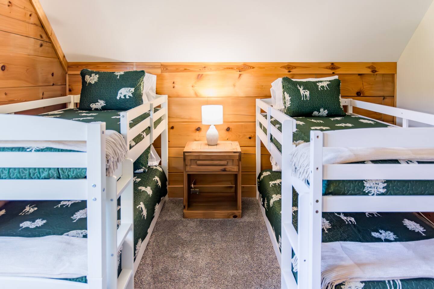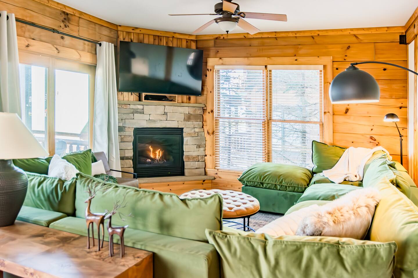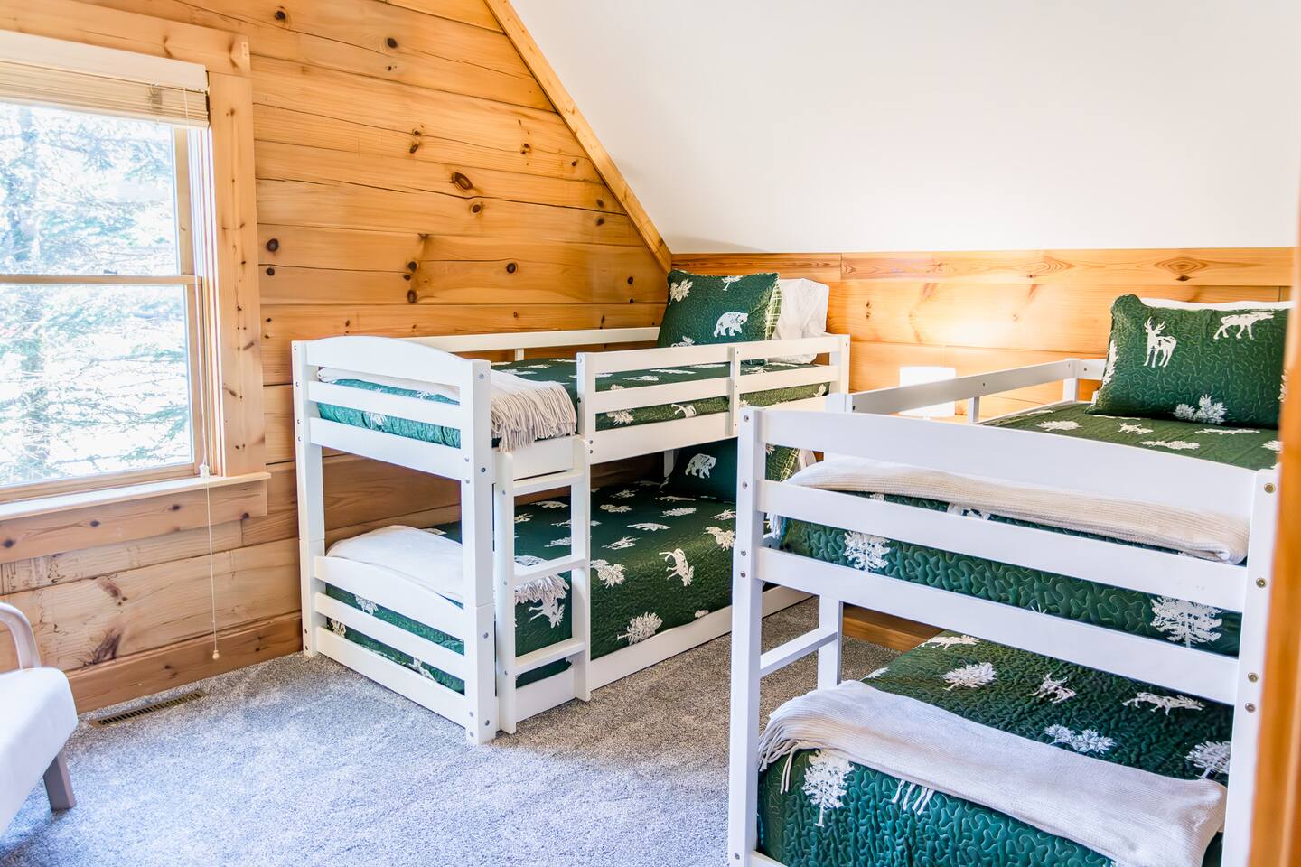 Welcome to this cozy modern cabin we call the Evergreen! Here's what you can expect: **DOWNSTAIRS** 🛋️ LIVING ROOM ✓ Large lounging sectional ✓ 65" Roku TV ✓ Gas fireplace ✓ Ceiling fan ✓ Games, puzzles, books 🍴DINING AREA ✓ Table and chairs for 10 ✓ 2 stools 🍳 KITCHEN ✓ Stainless fridge, oven/stove, microwave, dishwasher, garbage disposal ✓ Fully stocked (pots/pans, crockpot, dishes, glasses, etc.) ✓ Keurig + regular coffee maker 🛏️ BEDROOM #4: (There is 1 bd downstairs + 3 upstairs.) ✓ Queen bed ✓ Closet + dresser 🛁 FULL BATHROOM ✓ Bathtub/shower combo ✓ Sink, toilet, hairdryer FRONT PORCH ✓ Seating for 6 SIDE PORCH ✓ Hot tub for 6 **UPSTAIRS** 🛏️ PRIMARY BEDROOM ✓ King bed ✓ Large closet w/ twin rollaway + pack & play ✓ Smart TV ✓ Desk/vanity ✓ Leather bench that converts into a twin bed 🛁 PRIMARY BATHROOM ✓ Double sinks ✓ Jetted tub ✓ Stand up shower ✓ Hairdryer 🛏️ BEDROOM #2 ✓ King bed ✓ Dresser + closet ✓ Smart TV 🛏️ BEDROOM #3 ✓ 4 twin beds (2 sets of low profile bunk beds) ✓ Dresser + closet, chair (BEDROOM #4 is downstairs) **LOWER LEVEL** ENTRYWAY/MUD ROOM ✓ Lots of hooks for hanging ski gear ✓ Sitting bench PRIVATE GARAGE ✓Spacious garage for 2 vehicles (perfect for storing bikes or supplies!) LINENS & TOWELS PROVIDED. *You must be 25 or older to rent this home. ❄️ CLIMATE CONTROL: Central heat and air. Guests can control their temperature with a thermostat in the hallway. 🚗 PARKING: private garage (2 vehicles) + driveway (2 vehicles) HOSTED BY: This property is a part of the All Belong Collective. All Belong Co is a boutique hospitality business dedicated to 5-star stays. They'll take great care of you! WHAT'S NEARBY: • 10 Prime Steakhouse & Bar: 2-3 minute walk • Soaring Eagle Lift: 3-4 minute walk • Elk River Ski & Board Shop: 3-4 minute walk • Wildcat Grocery: 3 min • Village (shopping, more restaurants, etc): 3 min HOUSE RULES: 1. NO SMOKING OR VAPING within 25 ft of a doorway of the house. We will impose an additional fee if our cleaning staff smells smoke after your stay. 2. NO EVENTS, GATHERINGS, OR PARTIES. No outside visitors are allowed on the property without the permission from hosts PRIOR to your stay. We reserve this home for our confirmed, overnight guests. 3. QUIET HOURS from 10pm-7am to respect the neighbors. 4. FOLLOW ALL POSTED HOT TUB RULES. Keep cover locked for safety and do not leave children unattended. 5. Please FOLLOW CHECKOUT INSTRUCTIONS in the Guest Manual before departing. (we're not going to make you clean, we promise!)