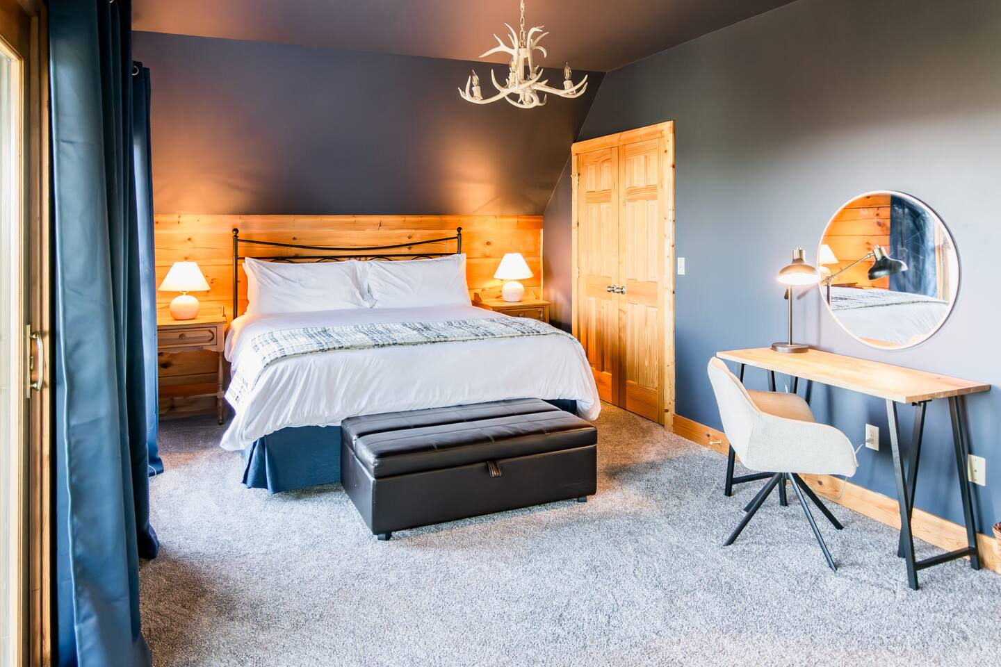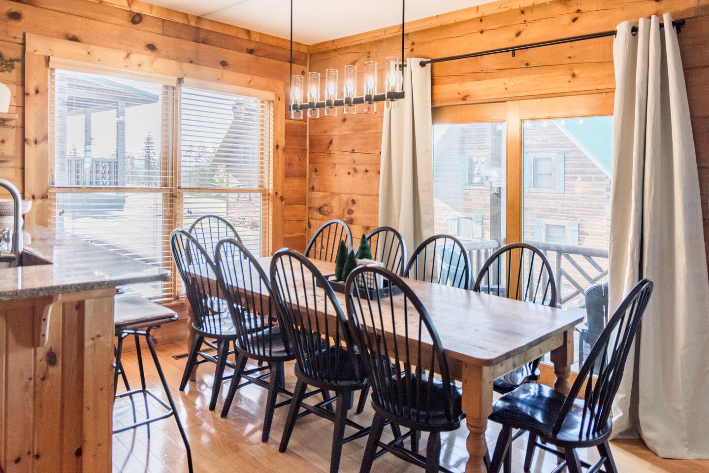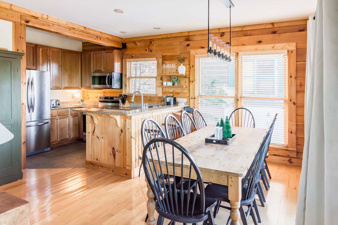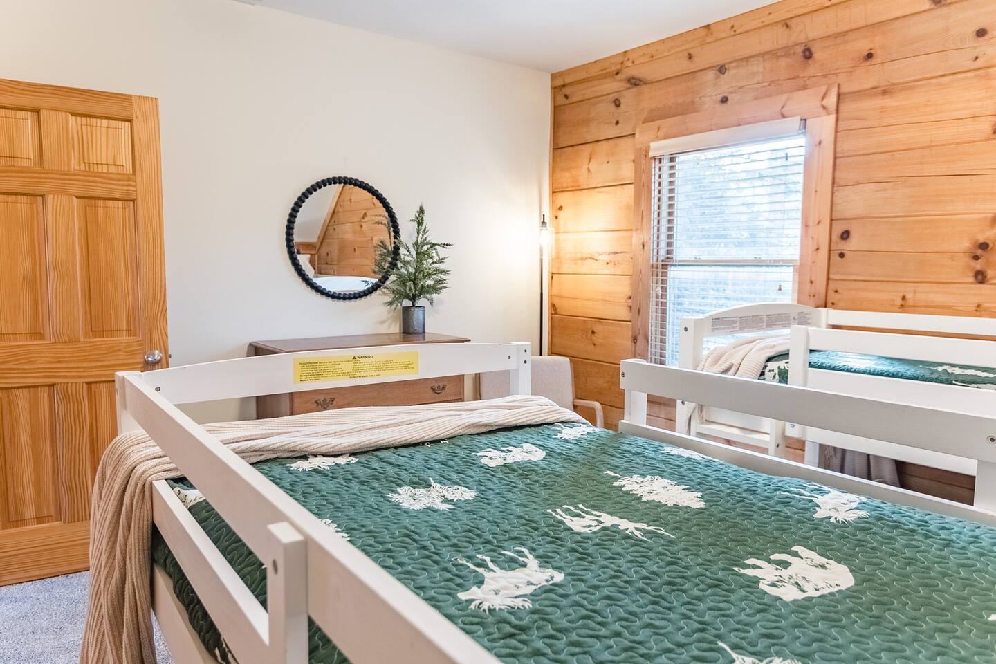 Welcome to this cozy modern cabin we call the Evergreen! Here's what you can expect: **DOWNSTAIRS** 🛋️ LIVING ROOM ✓ Large lounging sectional ✓ 65" Roku TV ✓ Gas fireplace ✓ Ceiling fan ✓ Games, puzzles, books 🍴DINING AREA ✓ Table and chairs for 10 ✓ 2 stools 🍳 KITCHEN ✓ Stainless fridge, oven/stove, microwave, dishwasher, garbage disposal ✓ Fully stocked (pots/pans, crockpot, dishes, glasses, etc.) ✓ Keurig + regular coffee maker 🛏️ BEDROOM #4: (There is 1 bd downstairs + 3 upstairs.) ✓ Queen bed ✓ Closet + dresser 🛁 FULL BATHROOM ✓ Bathtub/shower combo ✓ Sink, toilet, hairdryer FRONT PORCH ✓ Seating for 6 SIDE PORCH ✓ Hot tub for 6 **UPSTAIRS** 🛏️ PRIMARY BEDROOM ✓ King bed ✓ Large closet w/ twin rollaway + pack & play ✓ Smart TV ✓ Desk/vanity ✓ Leather bench that converts into a twin bed 🛁 PRIMARY BATHROOM ✓ Double sinks ✓ Jetted tub ✓ Stand up shower ✓ Hairdryer 🛏️ BEDROOM #2 ✓ King bed ✓ Dresser + closet ✓ Smart TV 🛏️ BEDROOM #3 ✓ 4 twin beds (2 sets of low profile bunk beds) ✓ Dresser + closet, chair (BEDROOM #4 is downstairs) **LOWER LEVEL** ENTRYWAY/MUD ROOM ✓ Lots of hooks for hanging ski gear ✓ Sitting bench PRIVATE GARAGE ✓Spacious garage for 2 vehicles (perfect for storing bikes or supplies!) LINENS & TOWELS PROVIDED. *You must be 25 or older to rent this home. ❄️ CLIMATE CONTROL: Central heat and air. Guests can control their temperature with a thermostat in the hallway. 🚗 PARKING: private garage (2 vehicles) + driveway (2 vehicles) HOSTED BY: This property is a part of the All Belong Collective. All Belong Co is a boutique hospitality business dedicated to 5-star stays. They'll take great care of you! WHAT'S NEARBY: • 10 Prime Steakhouse & Bar: 2-3 minute walk • Soaring Eagle Lift: 3-4 minute walk • Elk River Ski & Board Shop: 3-4 minute walk • Wildcat Grocery: 3 min • Village (shopping, more restaurants, etc): 3 min HOUSE RULES: 1. NO SMOKING OR VAPING within 25 ft of a doorway of the house. We will impose an additional fee if our cleaning staff smells smoke after your stay. 2. NO EVENTS, GATHERINGS, OR PARTIES. No outside visitors are allowed on the property without the permission from hosts PRIOR to your stay. We reserve this home for our confirmed, overnight guests. 3. QUIET HOURS from 10pm-7am to respect the neighbors. 4. FOLLOW ALL POSTED HOT TUB RULES. Keep cover locked for safety and do not leave children unattended. 5. Please FOLLOW CHECKOUT INSTRUCTIONS in the Guest Manual before departing. (we're not going to make you clean, we promise!)